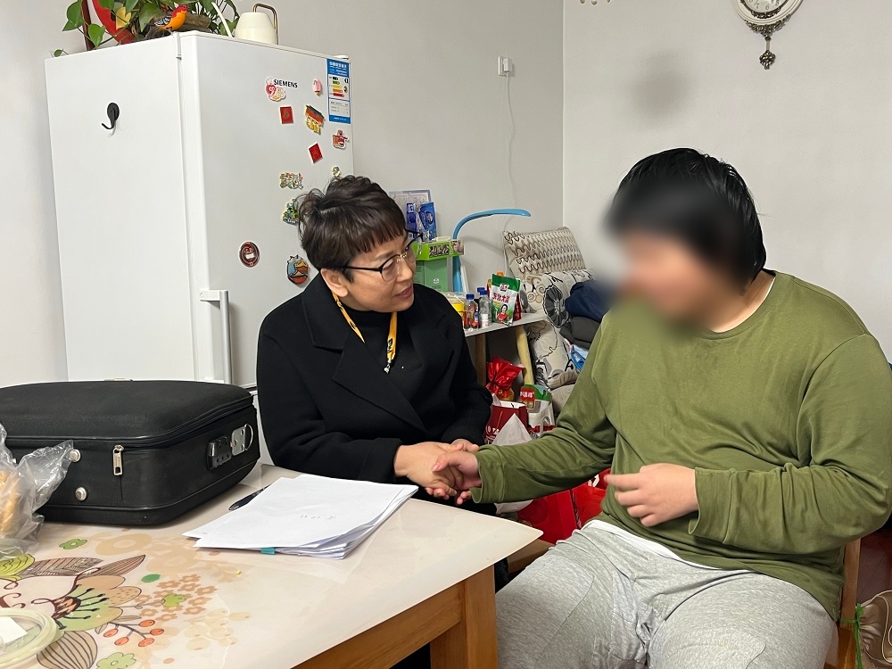 针对不同患儿的个体情况,康复师开展了有针对性的指导。在17岁的王**家中,康复师了解到他因染色体变异导致认知较弱、智商偏低,日常自理能力欠缺,小便情况有所改善,但大便仍需完全依赖他人。他肢体灵活,但情绪控制较差,暴躁时常有打妈妈和自伤的行为。康复师重点指导家长如何在情绪爆发前进行有效疏导,利用他肢体灵活的特点引导正向表达,同时围绕如厕训练给予具体方法,帮助逐步提升自理能力。