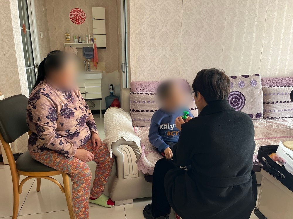 出发当日,康复师团队带着康复评估工具、家庭训练指导手册及爱心慰问物资,驱车前往固安患儿家中。相较于医院诊室,家庭环境更能真实反映患儿的日常状态、生活习惯以及居家康复的薄弱环节,康复师们摒弃程式化检查,以更温和、耐心的方式与患儿互动,慢慢拉近与孩子和家长的距离,让整个评估与指导过程更顺畅、更贴心。