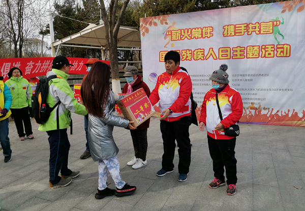 此次残疾人日志愿者组织了残障人士趣味活动,活动以体验各种趣味游戏为主题,包括“行路难”、“单手投篮”、“赶球入栏”、“隔山打牛”等等,趣味活动结束后,还为参赛人员颁发了奖品。