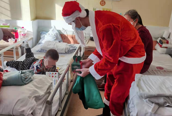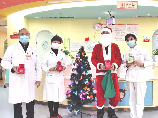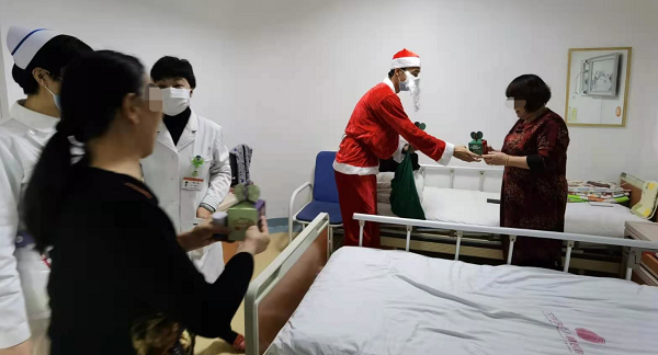 病情问诊12月24日是平安夜(即圣诞前夕),大街小巷上早已弥漫着圣诞的气息,为了让患儿和家属感受到节日的气氛,缓解疾病带来的折磨,北京天使儿童医院特别策划,提前为患儿准备了精心包装好的平安果,由“圣诞老人”亲自送到每个患儿和家属的手上。