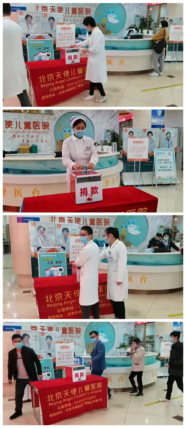 本次捐款活动本着依法组织、广泛发动、坚持自愿、鼓励奉献的原则,得到了北京天使儿童医院全院医护人员和职工的踊跃参与。捐款仪式中,医院领导率先垂范,带头捐款。许多门诊医生、护士在匆匆赶来捐款后,又立即回到工作岗位,继续忙碌。