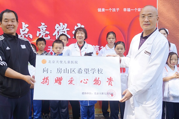 活动现场,戈光辉院长代表北京天使儿童医院向希望学校的孩子们捐赠了爱心物资,当孩子们拿到礼物时,脸上都洋溢着喜悦的笑容。北京天使儿童医院戈光辉院长表示:“也许我们这一点点的爱是微不足道的,但涓涓细流可以汇成江海,愿我们的爱能够温暖每一个孩子的心灵。”