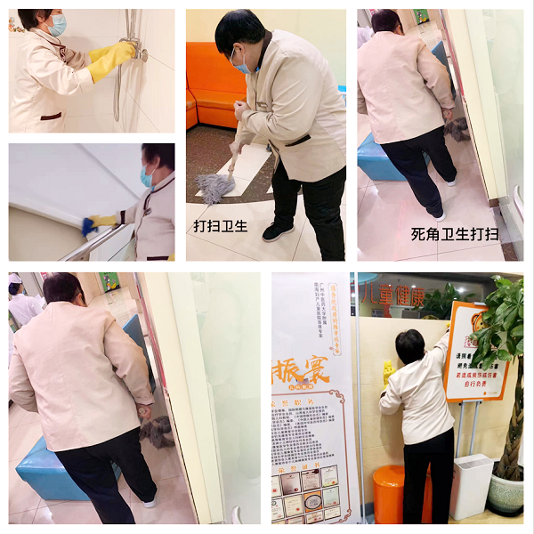 北京天使儿童医院院内各个角落,保洁人员每天及时打扫卫生,努力做到“卫生无死角”,为看诊患儿和家属营造干净的就医环境。